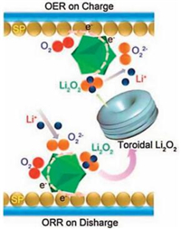 | Scheme 2. Schematic diagram of the proposed Au NC catalyst mechanismin the Li– O2 cell. Reprinted from Ref. [21]. Copyright 2015 Nature Publishing Group. | |