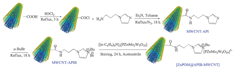 | Scheme 1. Preparation of [ZnPOM@APIB-MWCNT]. | |