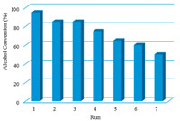| Figure 4. The results obtained from catalyst reuse and stability in the oxidation of benzyl alcohol with H2O2 by [ZnPOM@APIB-MWCNT] under reflux conditions. | |