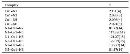 Table 2 Selected bond lengths (Å) and angles (°) for 1. |