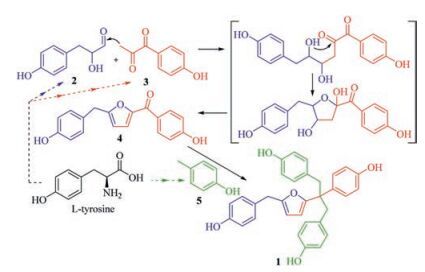 | Scheme 1. The plausible biosynthetic pathway of 1. | |