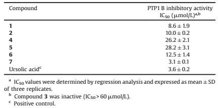 Table 2 Inhibitory activity of isolated compounds against PTP1B. |