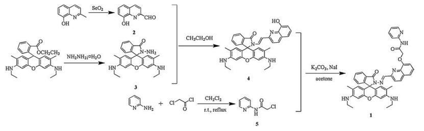 Compared with many of the current techniques for chromium detection, fluorescence sensing is a simple, safe, effective and rapid detection method [3]. Owing to the tendency of the paramagnetic Cr3+ to quench fluorescence emission, even a number of research groups have reported their recent achievements on Cr3+-targeted fluorescent sensors the reports with a "turn-on" response are still limited [4]. We previously reported a series of rhodamine derivatives for the efficient detection of Fe3+ [5], Hg2+ [6], Cu2+ [7], and Zn2+ [8]. It has been proven that rhodamine framework is an ideal mode to construct chelation-enhanced fluorescence (CHEF) off-on fluorescent probes due to its particular structural property.
