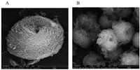 | Fig. 1. SEM images of 3D-4MgCO3·Mg(OH)2·4H2O (A) and 3D-4MgCO3·Mg(OH)2·4H2O-AuNPs (B). | |