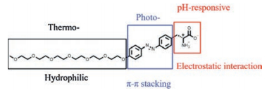 In conclusion, we designed and synthesized a novel gelator AA-Azo-EG6 which possesses photo-, pH-and thermo-responsive properties attributable to its azo, AA and EG6 domain, respectively. Moreover, the gelator can self-assemble to generate physically cross-linked multi-responsive hydrogel under a combined interaction of salt-bridge, π–π stacking/hydrophobic interactions. The responsiveness of the gel at macroscopic scale was characterized by various spectroscopies and microscopies. This gel could be potentially useful in tissue engineering as well as drug delivery.