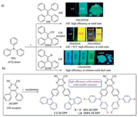 | Fig. 1. (a) Examples for the fabrication of efficient solid emitters through the incorporation of AIE units. (b) Illustration of the design concept of this work. Photographs in (a) were reproduced from ref. [14, 22, 25, 27], with permissions from John Wiley and Sons (ref. [14, 22, 27]) and American Chemistry Society (ref. [25]), respectively. | |