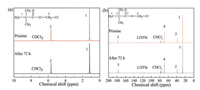 | Fig. 1. 1H NMR (a) and 13C NMR (b) spectrum of CP based electrolyte before and after reacting with Li2O2 for 72h. | |