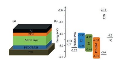 Table 2 Hole and electron mobilities of the polymers based on P2 and P3/PC71BM. |