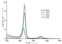 | Fig. 1. UV/vis spectra of 2Zn (black line), 3Zn (blue line), 4Zn (red line) and 5Zn (dark cyan line) CH2Cl2. | |