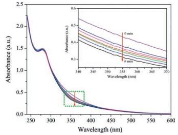 | Fig. 1. Variation of UV–vis spectra of AL-azo-PEG in THF solution (0.1 mg/mL) irradiated by UV light. | |