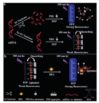 | Scheme 1. Proposed principle for the detection of S1 nuclease and BPA using cationic conjugated polymers and PDI. | |