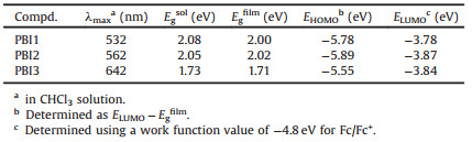 Table 1 Optical and electrochemical properties of the PBI based acceptors. |