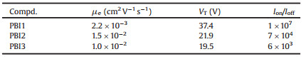 Table 2 Field-effect electron mobilities of the PBI based acceptors in a BGBC configuration. |