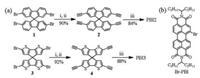 | Scheme 2. (a) Synthetic procedures of the acceptor PBI2 and PBI3. (ⅰ) PdCl2(PPh3)2, PPh3, CuI, i-Pr2NH at 85 ℃, 12h. (ⅱ) CH2Cl2, NaOH, r.t., 2h. (ⅲ) Br-PBI, Pd(PPh3)4, CuI, Toluene/Et3N (2:1, v/v) at 80 ℃, 24h. (b) The chemical structure of the compound Br-PBI. | |