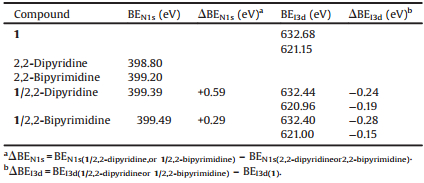 Table 1 BEN1s and BEI3d of compound 1, 2, 2-dipyridine, 2, 2-bipyrimidine, 1/2, 2-dipyridine and 1/2, 2-bipyrimidine. |
