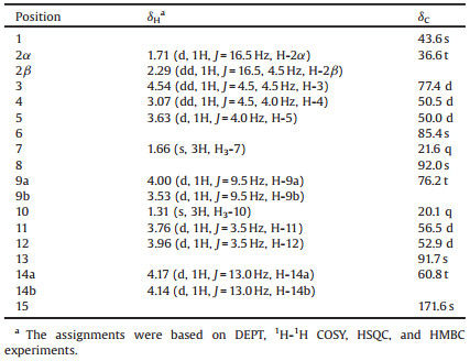 C. Huo, H. Liang, Y. Zhao, et al., Phytochemistry 69 (2008) 788-795. DOI:10.1016/j.phytochem.2007.08.022 |
