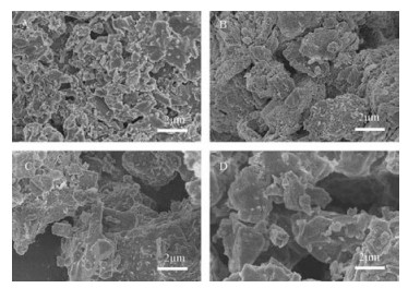 Fig. 1 shows the SEM images of the CO2 adsorbents. Doping K and Al in Li4SiO4 directly affects the morphology of the samples. Compared with the pristine Li4SiO4, the surface of the doped adsorbents becomes rough, which is helpful to the contaction of CO2 and the adsorbents.