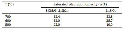 The optimum adsorption temperature of Li4SiO4 in reaction (1) is ~700 ℃ [9, 10], it limits the application of Li4SiO4 in many aspects [4-7]. Thus, it is necessary to broaden the range of Li4SiO4 adsorption temperature to increase its application fields.