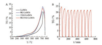 | Fig. 2. Adsorption/desorption performance of the doped Li4SiO4 adsorbents for CO2 (60 mL/min) adsorption and N2 (100 mL/min) desorption. (A) Different Li4SiO4-based adsorbents, (B) the 8K15Al-Li4SiO4 adsorbent. | |