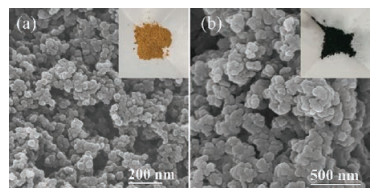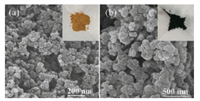 | Fig. 2. SEM images of (a) PPA and (b) PCA. The inset digital photos show their macroscopical form. | |