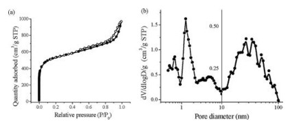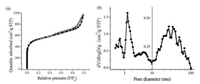 | Fig. 3. (a) N2 adsorption-desorption isotherm and (b) DFT pore size distribution curve of PCA. | |
