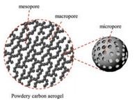 Many factors in supercapacitors influence the energy density, such as electrolytes and electrode materials. It is known that the higher operation voltage will give rise to a significant improvement of energy density, because it is proportional to the square of the operation voltage. Therefore, replacing conventional aqueous electrolytes (1 V) with organic electrolytes (2.7 V) is highly desirable for high-energy-density supercapacitors. Meanwhile, electrode materials also play a key role to critically determine the energy density of supercapacitors. The current electrode materials mainly include metal oxides, carbon materials, and conducting polymers. Metal oxides and conducting polymers may provide higher energy density via forming pseudocapacitance [7, 8], but suffer from poor ionic transportation and electronic conductivity, restricting their broad application [9, 10]. Carbon materials, including carbon nanotubes, graphene and porous carbons, are considered as the promising electrode materials because of their tunable surface area, good conductivity, and high chemical and physical stability [11-16]. Among various carbon materials, activated carbons (ACs) bearing plenty of micropores are most widely used, taking account of their large surface areas associated with high capacitance and moderate cost. However, these micropores usually locate on the surface of micron/millimetrescaled carbon particles and are unconnected to each other, leading to slow ionic transfer from bulky solution to interior pores. Thus, the ion accessible pores and surface areas decrease, deteriorating the high rate charging-discharging properties. Recently, three-dimensional (3D) network structured carbons containing interconnected micro-, and meso-/macropores have been shown to exhibit enhanced electrochemical performance, particularly at high current densities when compared with ACs [9, 17-19]. Intrinsically powdery carbon aerogels (PCAs) are a kind of such well-defined 3D interconnected nanonetwork with hierarchical pores, developed most recently in our group [11]. PCAs were found to demonstrate fast ion transport capability as well as a high utilization of pore surface area in aqueous electrolyte. However, PCAs still suffer from a low energy density in aqueous electrolyte, a universal bottleneck for supercapacitors [11]. Thus, the exploration of PCAs in organic electrolytes for high energy density supercapacitors is highly desired.