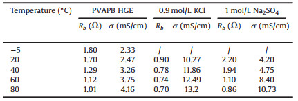 Table 1 Rb and σ of the electrolytes at different temperatures. |