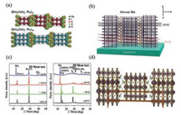 | Fig. 11. (a) Structure of Ruddlesen-Popper (RP) type perovskite (BA)2(MA)2Pb3I10 and (BA)2(MA)3Pb4I13 prepared by hot casting method. (b) Schematic demonstration of 2D perovskite crystal orientation along the (101), (202), and (111) planes. (c) XRD patterns of 2D and 3D PVKs after storing for specific times. Copied with permission [19]. Copyright 2016, Nature Publishing Group. (d) Crystal structure of (BA)2(MA)4Pb5I16 for n = 5. Copied with permission [49]. Copyright 2017, Elsevier. | |