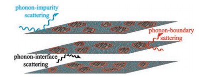where i is the scattering processes, including phonon-phonon scattering, phonon-defect scattering, phonon-impurity scattering, phonon-interface scattering, phonon-boundary scattering and so on. When the phonon MFP is comparable to the dimensions of scattering centers, such as impurity atoms, interfaces and domain boundaries, the scattering of phonons takes place [49]. Consequently, these scatterings lead to a decrease in thermal conductivity. In typical solid materials, the distribution of MFP covers a wide range from atomic-to nano-length scales [51].