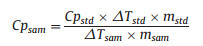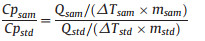 where Q, ΔT and m are the absorbed energy for temperature rise, the temperature rise after energy absorption and the mass, respectively. Based on equation (2), the ratio of Cpsam/Cpstd can be given as Eq. (3)
