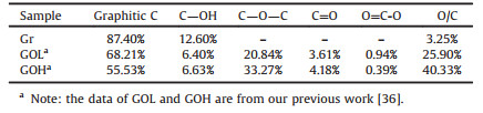 Table 1 Relative amount of each functional group and O/C ratio of graphite and GOs |
