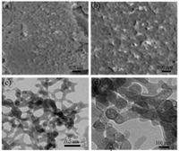 | Fig. 1. SEM (a, b) and TEM (c, d) images of the Co/Fe-MOF synthesized in an IL/SC CO2/surfactant emulsion system at 16.5 MPa and 80 ℃ for 48 h. | |
