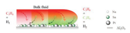 In propane dehydrogenation reactions in the presence of hydrogen, Pt, Pd, Rh, Ir, V, Cr [3-6], etc. were usually employed as the active components, while Sn, Ce, Zn, Ga [7-10], etc. were used as the promoters. Alkali metals, such as Na and K [11, 12] could be added as the alkali additives. Owing to their high catalytic activities, PtSn-based catalysts have attracted much attention. Usually, Al2O3, ZSM-5, SAPO-34, MgAl2O4, NaY, CIT-6 [13-18], etc. were employed as the supports for their versatile structures and acidity that could be utilized for catalytic activity optimizations by tuning the interactions between the active component and the support. In the catalyst fabrication processes, Sn was uploaded first and led to its oxide fixing over Al2O3 after the subsequent calcination. The fixed tin oxide could well divide Pt nanoparticles and facilitate the dispersion of Pt during the Pt uploading process. Moreover, the reactions could be improved through the reaction condition optimizations [19] and reaction atmosphere adjustment [20] as well.