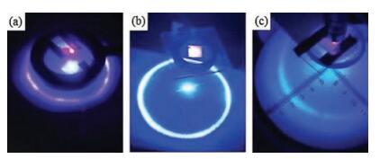 | Fig. 5. The Photographs of Debye diffraction ring: (a) sample A, (b) sample C and (c) sample F. | |
