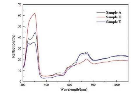 | Fig. 6. The reflection spectrum of sample A, sample D and sample E. | |