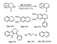 Luo and coworkers [19] also challenged the oxidation of cyclic secondary amines by Q6. Although reaction conducted under a slight higher temperature, this catalytic system did not require any additives and metal cocatalysts (Scheme 23). Tertrahydroisoquinolines with electron-donating group (23a-c) furnished dihydroisoquinolines with excellent yields. Meanwhile, 1-phenyl substituted tetrahydro-β-carbolines (23d) exhibited good reactivity under the same condition. However, the reaction with acyclic secondary amine (23e) and 3, 4-dihydroisoquinoline (23f) was very sluggish.