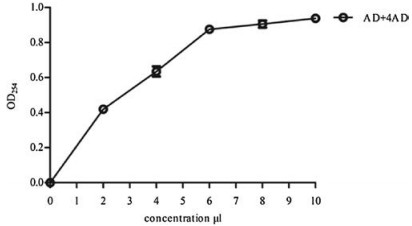 | Fig. 1. The standard absorption curve of AD + 4AD. | |