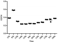 To validate this, M. neoaurum strain was cultured and the fermentation product using phytosterol was subjected to 96-well detection. The following media were used. LB medium (NaCl 10 g/L, yeast extract 5 g/L, tryptone 10 g/L) for conventional culture. MYC/ 01 seed culture media (glycerol 20 g/L, citric acid 2 g/L, Ferric ammonium citrate 0.05 g/L, K2HPO4 0.5 g/L, MgSO4·7H2O 0.5 g/L, NH4NO3 2g/L), pH 7.5, 121 ℃ heat sterilization for 20 min and preserved for future use. MYC/02 fermentation media (citric acid 2 g/L, Ferric ammonium citrate 0.05 g/L, K2HPO4 0.5 g/L, MgSO4·7H2O 0.5 g/L, NH4NO3 2 g/L, phytosterol 2 g/L), pH 7.5, 121 ℃ high-pressure steam sterilization for 20 min and for future use. The M. neoaurum was cultured overnight in the LB medium and preserved as inocula. Inoculation of 1% bacteria into a new LB medium from the inocula. M. neoaurum cultured in LB to OD600 = 1.5 was inoculated with 1% strains into MYC/02 fermentation Media containing 2 g/L phytosterol to detect the substrate transformation capacity and metabolic product analysis. The bacteria was cultured in Erlenmeyer flask in a shaker for 5–6 days and sampled every 24 h to monitor the yield. The value of the OD reflects the relative content of the mixture. There is significant difference of OD as the function of fermentation time (Fig. 3). The data showed that the method can discriminate the yield of phytosterol bioconversion. Further works are needed to quantify the relationship between the OD value and the content of targeted biotransformed compounds. The basis underlying the up and down of the values in Fig. 2 remains to be determined, one explanation might be the effect of other similar compounds in the bioconversion process. This method can also be adapted to measure other useful byproduct [9]. Microorganisms, selected wild-type or engineered strains, are increasingly effective tools of steroid modifications for the production of high-valued steroidal drugs and their precursors for the pharmaceutical industry, and applied at an industrial level [25]. The steroid-transforming strains in combination with our novel approach provide a highly effective and versatile platform example in the field of microbial bioconversions.