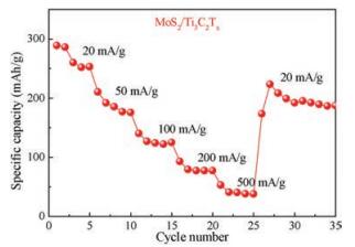 | Fig. 6. Race capacities at different current densities of MoS2/Ti3C2 composite. | |