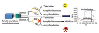 The electrochemical method utilizes the difference in current signals to determine the degree of enzyme inhibition and concentration of organophosphophate pesticides. Some papers [21-25] have reported to improve the sensitivity using different modified methods for electrodes. These methods can satisfy the requirement of detection limit and has high sensitivity, however, the complex modification process of electrodes and extraction of organophosphophate pesticides from samples prior to detection are required or the large size of the electrochemical workstation is used which is not conducive for field analysis. Also, these modification and detection processed are hard to be integrated.