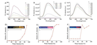 | Fig. 2. Fluorescence spectra of iso-PBP (A), PBP (B) and EBP (C) in THF/water mixtures. Fluorescence intensity of iso-PBP (D), PBP (E) and EBP (F) in THF/water mixtures as a function of the water fraction. Inset: fluorescence images of iso-PBP, PBP and EBP in THF/water mixture under a 365 nm light irradiation. | |