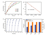 | Fig. 2. (a) Time plots for hydrogen generation toward the hydrolysis of ammonia borane catalyzed by Co-(CeOx)0.91/NGH at temperatures ranging from 298 K to 313 K. (b) Arrhenius plot of lnk versus 1/T during the hydrolysis of NH3BH3 over Co-(CeOx)0.91/NGH (c) durability tests of Co-(CeOx)0.91/NGH toward the hydrolysis of ammonia borane at 298 K. (d) corresponding TOF values and H2 selectivity towards the hydrolysis of ammonia borane at different temperatures (298–313 K). | |