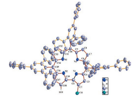 | Scheme 2. ORTEP plots of 4 (H3TTPPC-Cl) (Showing 50% probability thermal displacement ellipsoids, hydrogen atoms are omitted for clarity). | |