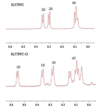 | Fig. 2. 1H NMR spectra of the β-pyrrole protons region of 3 (H3TTPPC) (above) and 4 (H3TTPPC-Cl) (down). | |