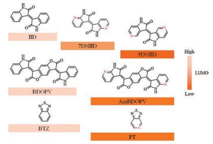 | Fig. 4. Molecular structures of D-A conjugated polymers based on AzaBDOPV. | |