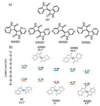 | Fig. 2. (A) Molecular structures and (B) the optimized structures and energy levels of isoindigo derivatives according to density functional theory at the B3LYP/6-31G* level. | |