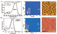| Fig. 5. UV-vis-NIR spectrum, 2D-GIXD patterns and AFM images of BDOPV-2T (A) and AzaBDOPV-2T (B). Reproduced with permission [43]. Copyright 2013, Wiley-VCH. | |