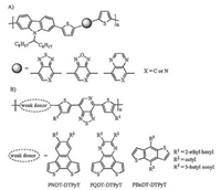 | Fig. 6. Molecular structures of polycarbazole analogues (A) and pyridal[2, 1, 3]thiadiazole-based conjugated polymers (B). | |