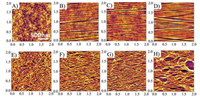 | Fig. 8. AFM images of dielectric substrate surfaces and related polymer fiber morphology without and with nanostructures: (A) Surface without structures, (B) 100-nm-structured surface, (C) 250-nm-structured surface, (D) 500-nm-structured surface, and (E) polymer fibers on nonstructured surface, (F) polymer fibers on 100-nm-structured surface, (G) polymer fibers on 250-nm-structured surface, (H) polymer fibers on 500-nm-structured surface. Reproduced with permission [11]. Copyright 2012, American Chemical Society. | |