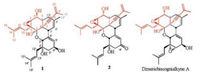 The ECD curves (Fig. 3) of 1 and 2 were similar to that of dimericbiscognienyne A, which suggested that 1 and 2 shared the same obsolute configurations with dimericbiscognienyne A. Therefore, the obsolute configurations of 1 and 2 were assigned as 1R, 2S, 3S, 4R, 5S, 6R, 1′R, 2′S, 4′S, 7′R, and 1R, 2S, 3S, 4R, 5S, 6R, 1′R, 2′S, 7′R, respectively.